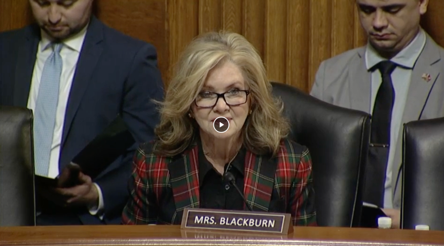 Click here to download Senator Blackburn’s opening remarks, and click here and here to download her exchanges with Henry Hinton.